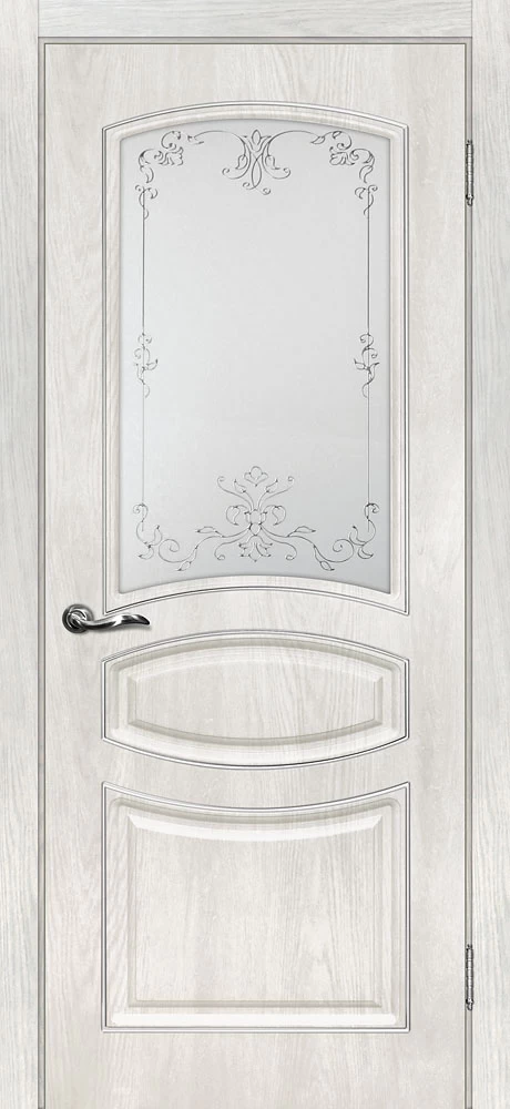 Качественная Межкомнатная дверь Сиена-5 Дуб жемчужный продается по цене 11 683 руб. за полотно. Доступные размеры 550x1900, 600x1900, 600x2000, 700x2000, 800x2000, 900x2000. Так же в наличии большой выбор комплектующих к данной модели, подходящих по цвету и фактуре.