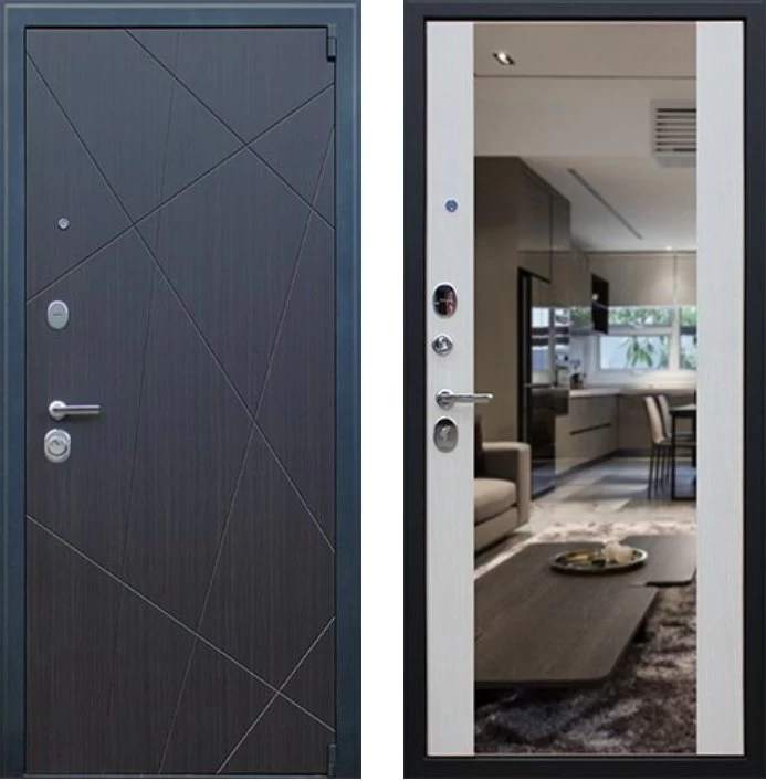 Надежная входная Дверь Вектор с зеркалом премиум класса по цене 48 657 руб. Большая толщина стали защитит от проникновения в ваш дом, квартиру или коттедж. Используется очень качественная фурнитура: замки, цилиндры, ручки, защелки. Покрытие и отделка двери изготовлено под внимательным контролем производителя. Дверь имеет долгий срок службы и гарантию.