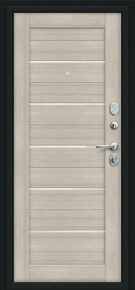 Надежная входная Браво Техно Kale Букле черное/Cappuccino Veralinga премиум класса по цене 33 757 руб. Большая толщина стали защитит от проникновения в ваш дом, квартиру или коттедж. Используется очень качественная фурнитура: замки, цилиндры, ручки, защелки. Покрытие и отделка двери изготовлено под внимательным контролем производителя. Дверь имеет долгий срок службы и гарантию.