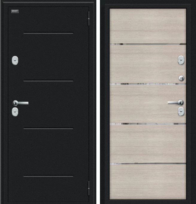 Надежная входная Дверь Браво Thermo Лайн Букле черное/Cappuccino Veralinga премиум класса по цене 47 357 руб. Большая толщина стали защитит от проникновения в ваш дом, квартиру или коттедж. Используется очень качественная фурнитура: замки, цилиндры, ручки, защелки. Покрытие и отделка двери изготовлено под внимательным контролем производителя. Дверь имеет долгий срок службы и гарантию.